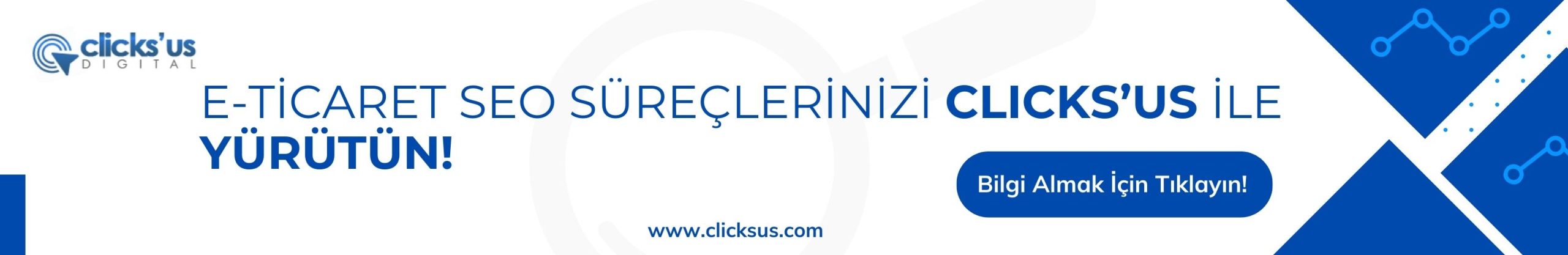 Başarılı bir e-ticaret sitesi kurmak, sadece güzel bir tasarım ve kaliteli ürünler sunmaktan çok daha fazlasını gerektiriyor. Gerçekten başarılı olmak için, web sitenizin her yönünü dikkatle incelemeniz gerekiyor. Güvenlik, yerel SEO, verilerin izlenmesi ve site hızınız gibi unsurlar, doğru yönetildiğinde hem kullanıcı deneyiminizi hem de SEO performansınızı önemli ölçüde iyileştirecektir. Tüm bunları tek başınıza gerçekleştirmek aslında sizler için büyük bir iş yükü olacaktır. Dolayısıyla bir SEO ajansı ile çalışmanız daha doğru bir yaklaşımdır. Bu anlamda Clicks’us olarak e-ticaret sitenizin SEO süreçlerini yönetmek için buradayız. Bizimle iletişime geçerek detaylı bildi edinebilirsiniz.