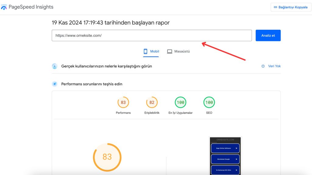 Mevcut Performans Analizi: Eski sitenizin sayfa hızını ve Core Web Vitals verilerini analiz edin. Bu veriler, siteyi taşırken nelere dikkat etmeniz gerektiğini gösterecektir. Bu verileri PageSpeed Insight aracı ile kontrol edebilirsiniz.