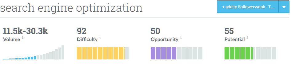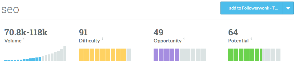 Moz Keyword Explorer’dan bir görüntü.